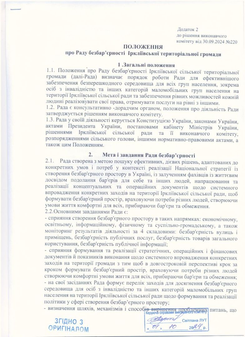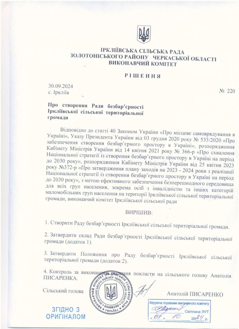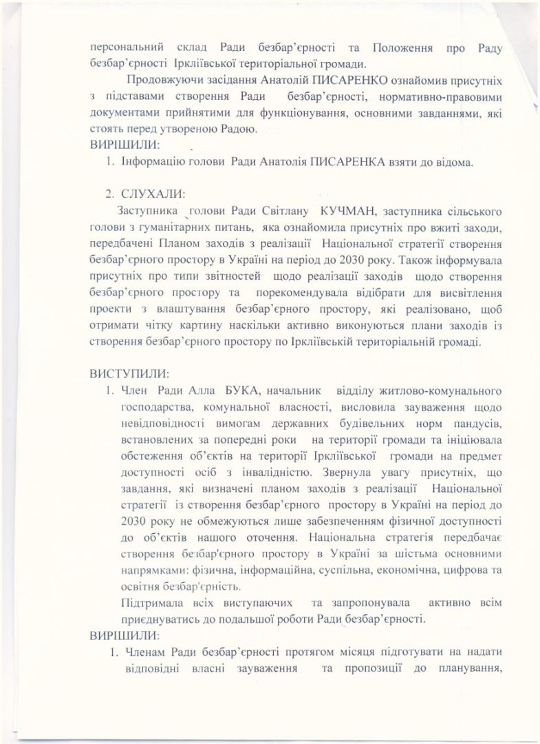 Звіт Іркліївської територіальної громади щодо виконання Плану заходів на 2025-2026 роки з реалізації Національної стратегії із створення безбар’єрного простору в Україні на період до 2030 року (станом на 01.07.2025 р.)Виплата грошової компенсації особам, які захищали незалежність, суверенітет та територіальну цілісність України, за найм (оренду) ними житлових приміщень
