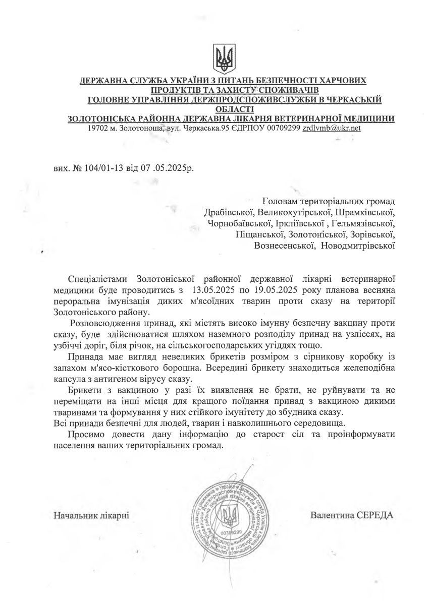 Планова весняна пероральна імунізація диких м'ясоїдних тварин проти сказу