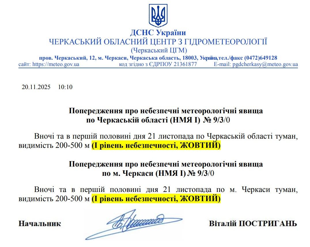 Попередження про небезпечні метеорологічні явища