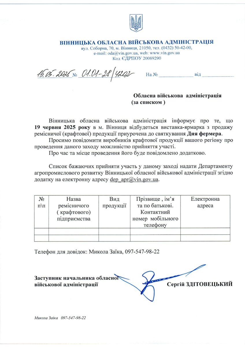 Щодо проведення виставки-ярмарки, приуроченої до святкування Дня фермера.